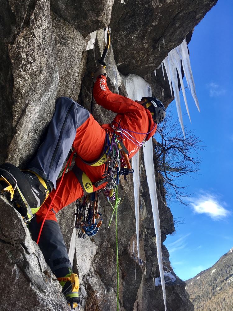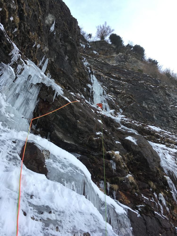 Material: Es wurden keine Bohrhaken verwendet, alle geschlagenen Haken wurden belassen. Serie Friends bis 3 & Eisschraufen nützlich.